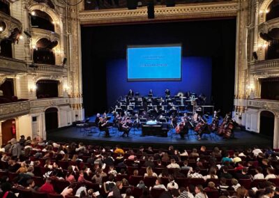 Na programu su bila djela britanskih skladatelja Edwarda Elgara, Henryja Purcella i Benjamina Brittena. Maestro Vlajnić je ostvario izvrsnu komunikaciju s punim gledalištem. Za početak, cijela je dvorana zapjevala „Sretan rođendan“ kazalištu koje je nedavno proslavilo 140. godinu postojanja. Zatim je učenike upoznao s oblikom ronda te ih proveo kroz skupine instrumenata predstavivši svaki pojedini instrument. Tijekom slušanja djela učenici su aktivno i s velikim interesom sudjelovali u kviz zadacima: prepoznavanje strukture ronda, broj ponavljanja osnovne teme u rondu, prepoznavanje instrumenata simfonijskog orkestra… Jedva čekamo dobiti rezultate.