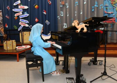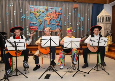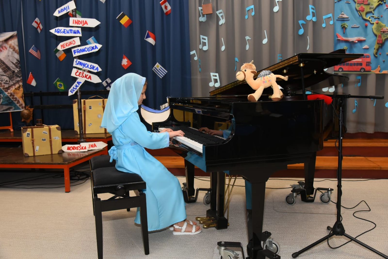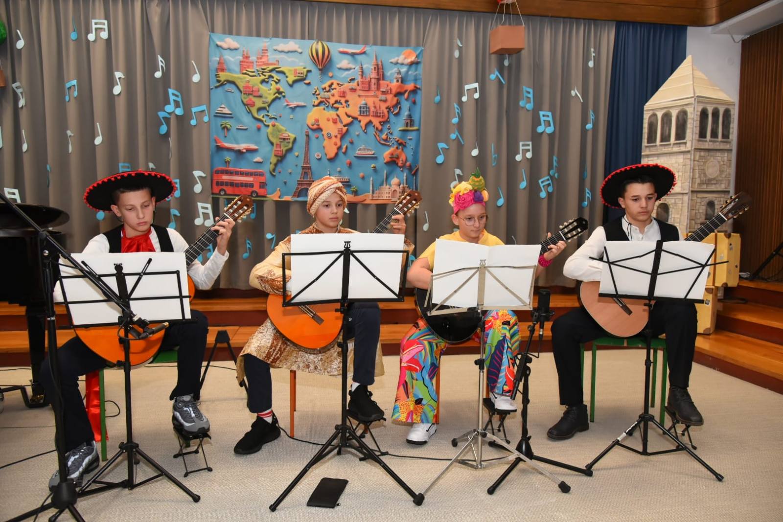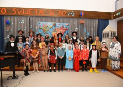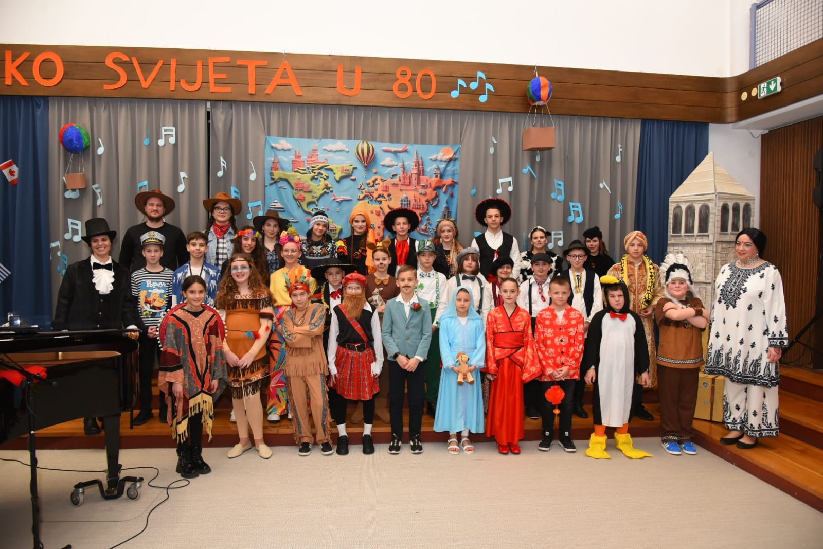 Ovogodišnja tema koncerta bila je Put oko svijeta kroz 80 nota, kao svojevrsna paralela romanu Julesa Vernea. Glazbenim je jezikom ispričana priča o putovanjima Phileasa Fogga (učiteljica Dianora Fučić) i princeze Aude (Mirjana Mikičić-Flego, prof.). Naravno, kao što je narator Passepartout (učenik Frane Jedretić) najavio, oni su poprilično lutali svijetom – puno više nego što je u knjizi prikazano. Glazbeno je putovanje započelo u Evropi, nastavilo se Azijom, dotaklo Australiju, Antarktiku te se preko Sjeverne i Južne Amerike završilo opet u „dobroj staroj Engleskoj“. Mnogobrojna je publika dugotrajnim pljeskom nagradila mlade izvođače.