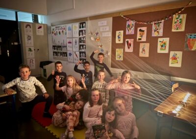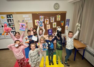 Dana 10. veljače, 1.b razred sa svojom se učiteljicom Majom Medarić okupio u učionici u večernjim satima. Naizgled sasvim obična večer pretvorila se u čarobnu večer lektire. Dok su učenici sjedili u svojim najdražim pidžamicama, učiteljica im je čitala priču o pjetliću, lisici i mačku. Zadatak je bio pozorno slušati priču jer se ona protezala kroz sve zamišljene aktivnosti. Učenici su bili podijeljeni u 3 grupe i svaka grupa je imala priliku sakupljati bodove. Okušali su se u aktivnostima poput “traženja izgubljenog pjetlića”, “udijeli osmijeh Macku Macaniću”, “lijina kuća”, “čudesni najpamtitelj” i kvizu znanja. Nagrada je bila osigurana za sva tri mjesta, ali naša najveća nagrada je bila večer okupana zajedništvom, veseljem, željom za znanjem i prilikom da jednog dana postanemo čeudesnim najčitateljem.